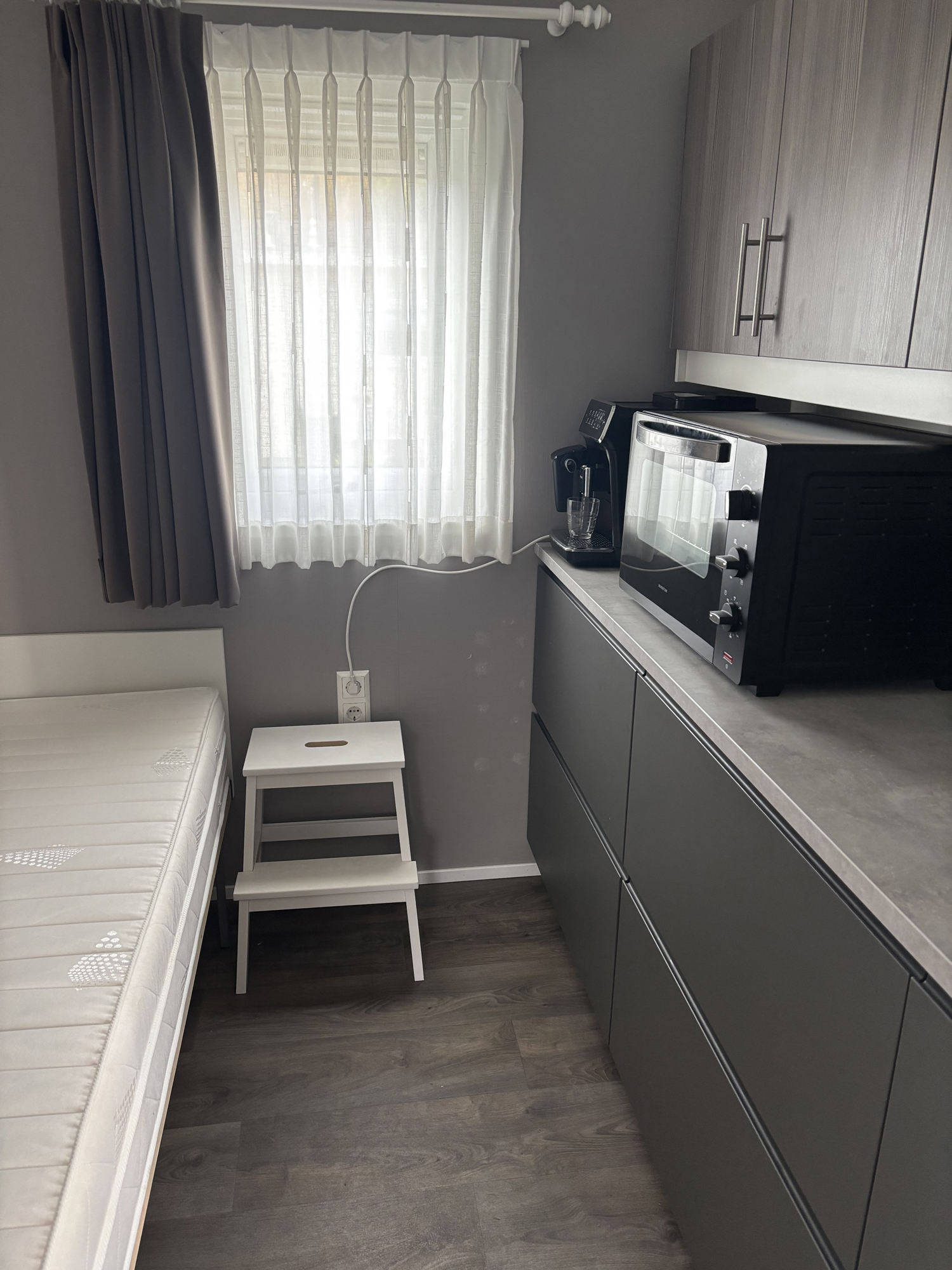 Dit chalet is voorzien van twee slaapkamers, CV, een keurigekeuken en een aangelegd terras met een schuur en een overkapping.